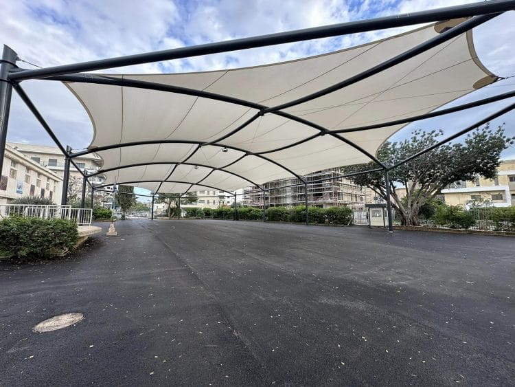 הקירוי בוצע לאחר התקנת ההצללה כפיילוט בחצר ביה”ס גורדון. ההצללה הינה עמידה, מגנה מפני גשם ושמש ובטוחה לשימוש תוך שימוש בטכנולוגיה מתקדמת, המאפשרת קירוי ללא עמודים תומכים במרכז החצר באופן שיאפשר שימוש בטוח בכל המרחב הפתוח ללא הפרעה.