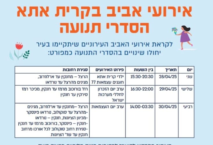 לקראת אירועי יום העצמאות בעיר ייחולו שינויים בהסדרי התנועה, הכוללים סגירת רחובות מרכזיים. העירייה פרסמה מפה מפורטת ובה פירוט הרחובות, השעות והימים בהם יבוצעו השינויים. הציבור מתבקש להיערך מראש ולאתר חניונים חלופיים, שכן לא תתאפשר תנועת כלי רכב ברחובות הסגורים גם עבור דיירי הבתים. כלי רכב שיחנו בניגוד להנחיות ייגררו לרחבת העירייה. מומלץ להתעדכן בפרטים המלאים במפה שצורפה.