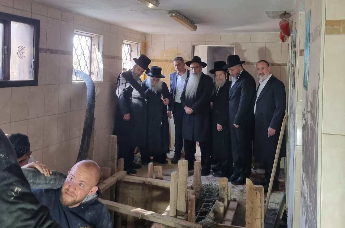 היום, (חמישי) יצקו את הבורות וכאשר שמע על כך האדמו”ר ממאקאווא שליט”א, ביקש להגיע למקום יחד עם רב העיר הרב דסקין, והרב יוסף חיים פר,ץ להתפלל ולומר פרקי תהילים בשעת יציקת הריצפה והקירות. “התלווה יו”ר המועצה דתית מר רפי אילוז, שגם עוקב אחר התהליך של השיפוץ חבר מועצת העיר אלקנה ויסנשטרן.